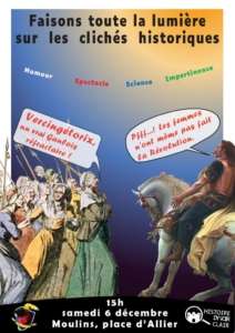L’association « Histoire d’y voir clair », issue du Collectif de lutte des archéologiques d’Auvergne constitué cet été face à l’opération « Murmures de la Cité », propose un décryptage historique accessible à toutes et tous ! Nous organiserons régulièrement des actions aux thématiques loufoques ou inattendues. Notre programme : dépoussiérer la science avec humour et impertinence !