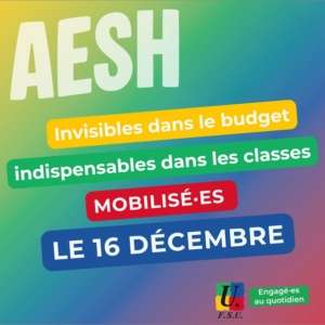 C’est pourquoi l’unité syndicale pour revendiquer un corps de catégorie B de la Fonction publique des AESH est effective. C’est pourquoi une proposition de loi en ce sens est soumise au Sénat. C’est pourquoi nous avons organisé dans plusieurs établissements des actions d’affichage public des AESH. Et c’est pourquoi la FSU soulèvera la question au CSA ministériel mardi 16 décembre.