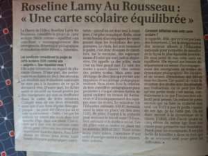 Consacrant les pages 2 et 3 de son édition du mercredi 1° avril à la carte scolaire, outre des entretiens avec des représentants syndicaux et des manifestants, La Montagne de l’Allier publie un entretien avec Md. la Dasen de l’Allier qui présente son argumentation en faveur de ce qu’elle appelle une « carte scolaire équilibrée ».