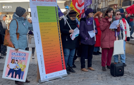 Environ 200 participantes et participants se sont retrouvés samedi 22 novembre place d'Allier à 14 h. Le CIDFF, le Collectif Hubertine Auclert, le Planning Familial, le collectif Mille Couleurs, la FSU et la CGT sont intervenus dans ce rassemblement où apparaissaient également la CFDT et la Confédération paysanne. Fanny Dauvergne, présidente du CIDFF Allier, est apparue aux informations régionales. Pour la FSU, après le premier rassemblement réussi l'an dernier [...]